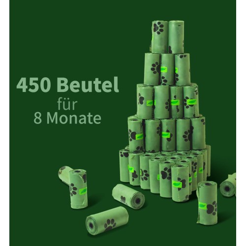 450 Poo Bags Dogs, Biodegradable Dog Poop Bags Rolls Compostable Dog Bags Scented Dog Waste Bags Strong Doggy Poop Bags with Dispenser for Outdoor Walking (Green)