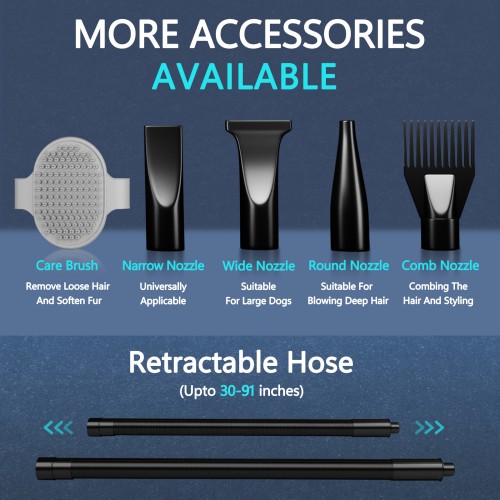 - Quiet,Loved by Pet: Exclusive design isolates the high-frequency and sharp sounds that pets don't like.The dog hair dryer is equipped with more reasonable noise suppression devices, and the maximum noise is ≤ 50db. The temperature setting has a temperature range from 85-130℉. An even airflow helps to dry faster and reduce damage