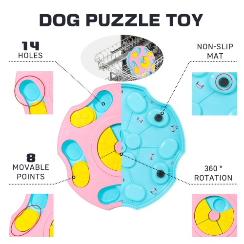 - Safe material: Puzzle feeders for dogs are made of food-safe material, with non-slip base design and reinforced with screws to prevent the food container from falling off, and water leakage holes to make it water and machine washable