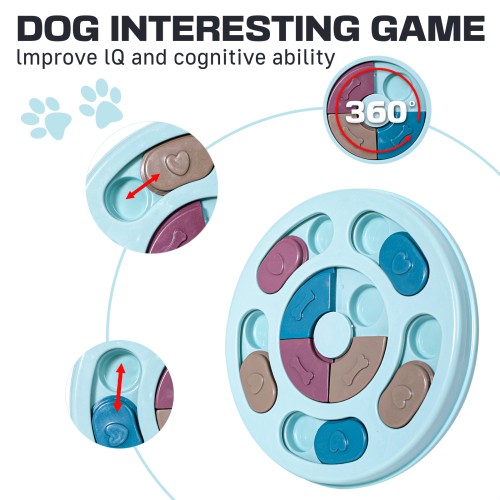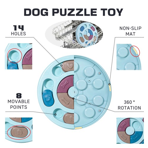 - Safe material: Puzzle feeders for dogs are made of food-safe material, with non-slip base design and reinforced with screws to prevent the food container from falling off, and water leakage holes to make it water and machine washable
